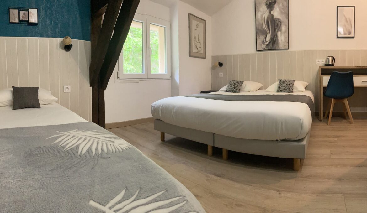 Pour garantir votre confort, la chambre est munie d’un lit Queen size (160×200), d’un lit individuel, d’un bureau, d’une télévision à écran plat, d’un sèche-cheveux et de produits d’accueil .